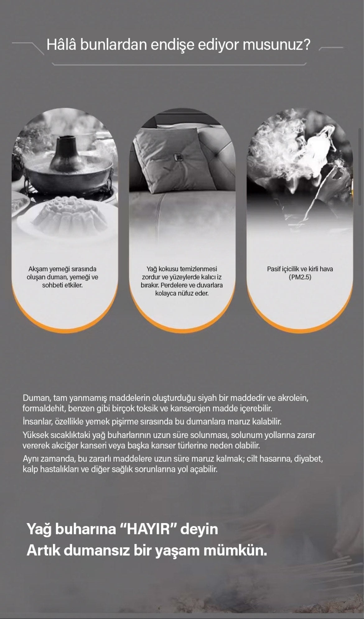 Sigara dumanı, yemek kokusu ve diğer kötü kokuları anında yok eder.